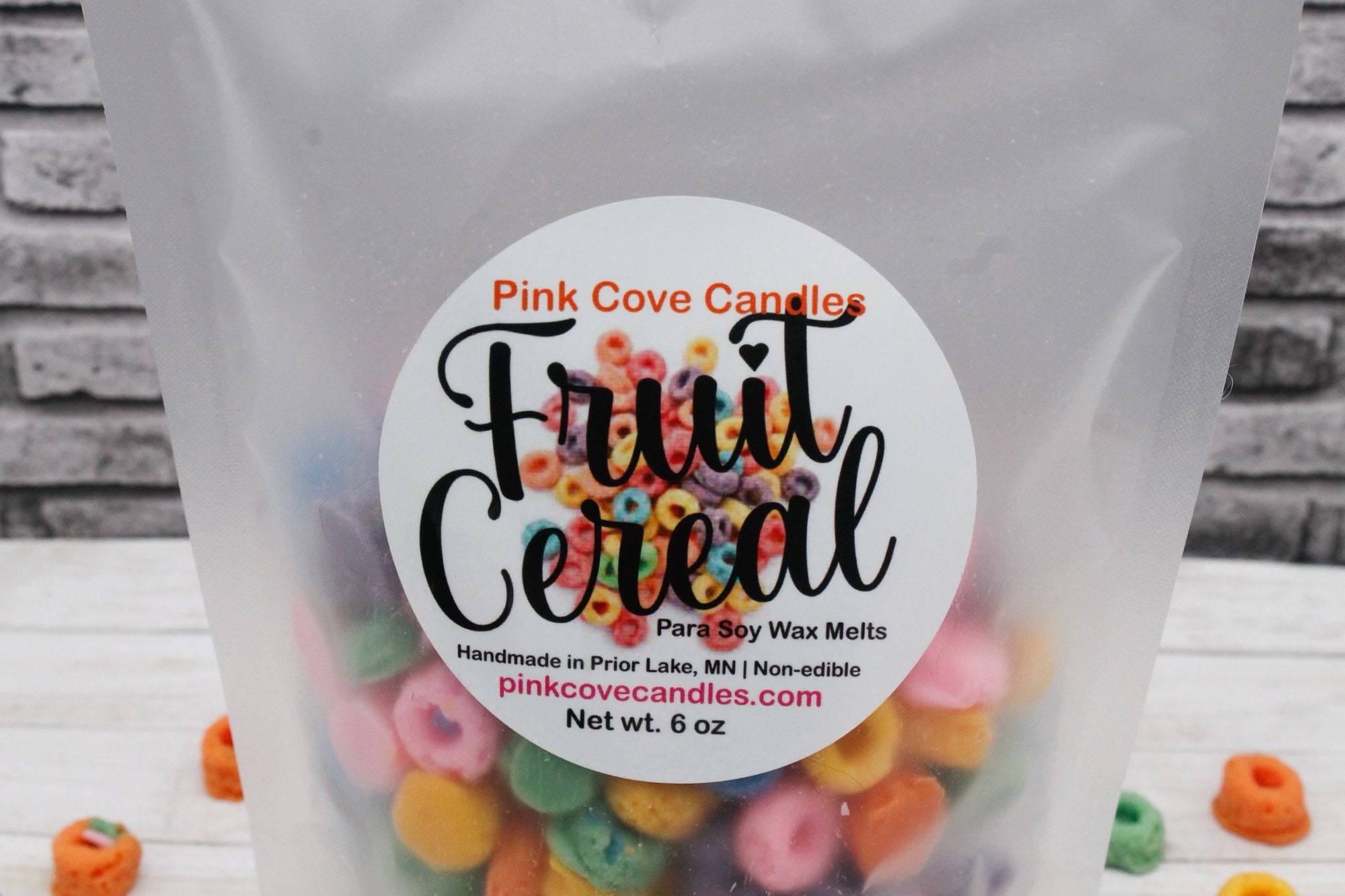 Fruit Loops inspired melts will bring you back to your childhood with the smell of sweet orange, tangy cherry, sweet vanilla bean with a hint of sandalwood.